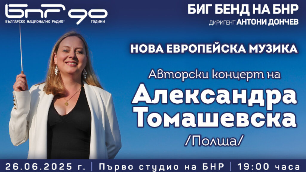 Изненада за почитателите си подготвя Биг бендът на БНР за края на сезона. За пръв път в историята му пред Бенда ще застане гост-диригентка. Младата полска музикантка Александра Томашевска приема предизвикателството да е първата жена пред джаз-музикантите на Радиото в заключителния концерт, който ще представи нейна авторска музика на 26 юни, четвъртък, от 19.00 часа в Първо студио на БНР.