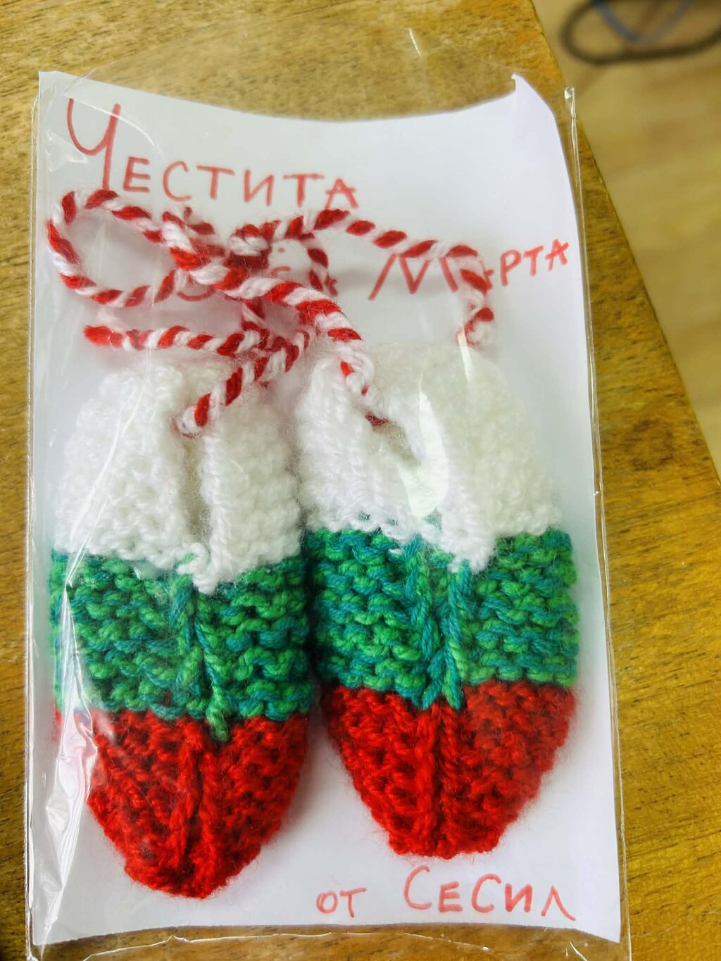 Сесил Лазова подари на водещата ръчно изплетена мартеница – цървули в цветовете на българското знаме.