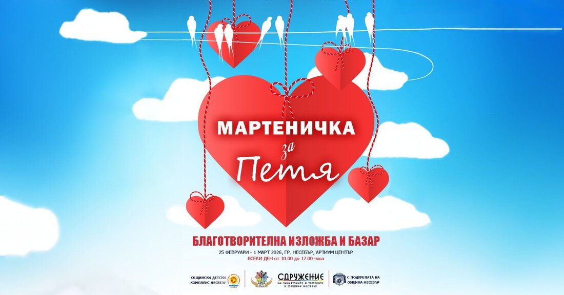 Благотворителен базар под надслов „Мартеничка за Петя“ ще се проведе в Несебър. Събраните средства ще са за рехабилитацията на 10 – годишната Петя Желева от морския град, която е с диагноза ДЦП. В подкрепа на детето и неговите родители Сдружението на занаятчиите и творците и Общинския детски комплекс организират за втора година благотворителната инициатива.