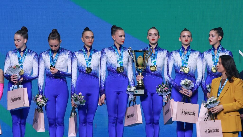 Die bulgarische Nationalmannschaft der Frauen in ästhetischer Gruppengymnastik wurde Weltmeister.