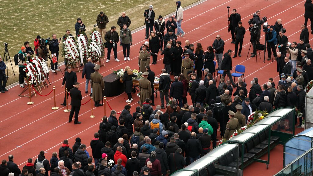 Χιλιάδες πολίτες αποχαιρέτησαν τον μεγάλο προπονητή ποδοσφαίρου Ντιμίταρ Πένεφ, ο οποίος απεβίωσε στις 3 Ιανουαρίου σε ηλικία 80 χρονών. Το προσκύνημα στο Εθνικό Στάδιο «Βασίλ Λέβσκι» χθες άρχισε υπό τους ήχους του ποιήματος «Το Νέο Νεκροταφείο πάνω από τη Σλίβνιτσα» με τη συνοδεία στρατιωτικής ορχήστρας, μετέδωσε το BGNES.