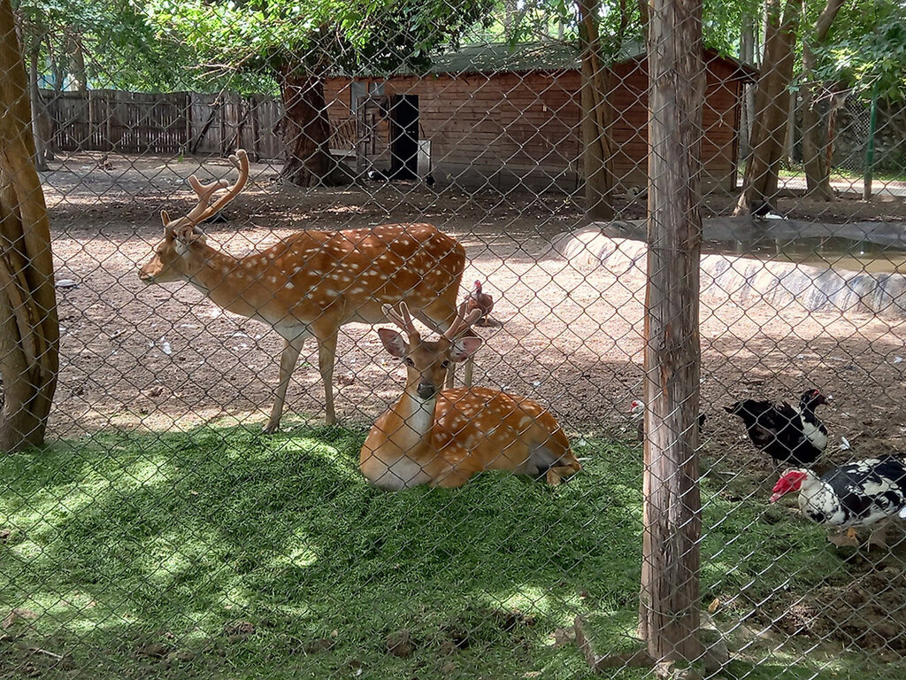 And the greatest delight among children, in addition to the designated area for games and entertainment in the island park, is brought by the inhabitants of the zoo with over 30 species of animals, including lions, Amur tigers, raccoons, llamas, ponies, monkeys and many others.