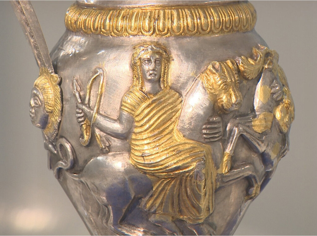 Based on their craftsmanship and the mythological scenes depicted, the vessels in the Rogozen Treasure can be divided into two types. Some were crafted in the Hellenistic style by Greek artisans, as exemplified by the jewel-like phial depicting Heracles seducing the priestess Auge. Others were clearly made by local Thracian craftsmen. These are particularly fascinating because they depict Thracian mythology.