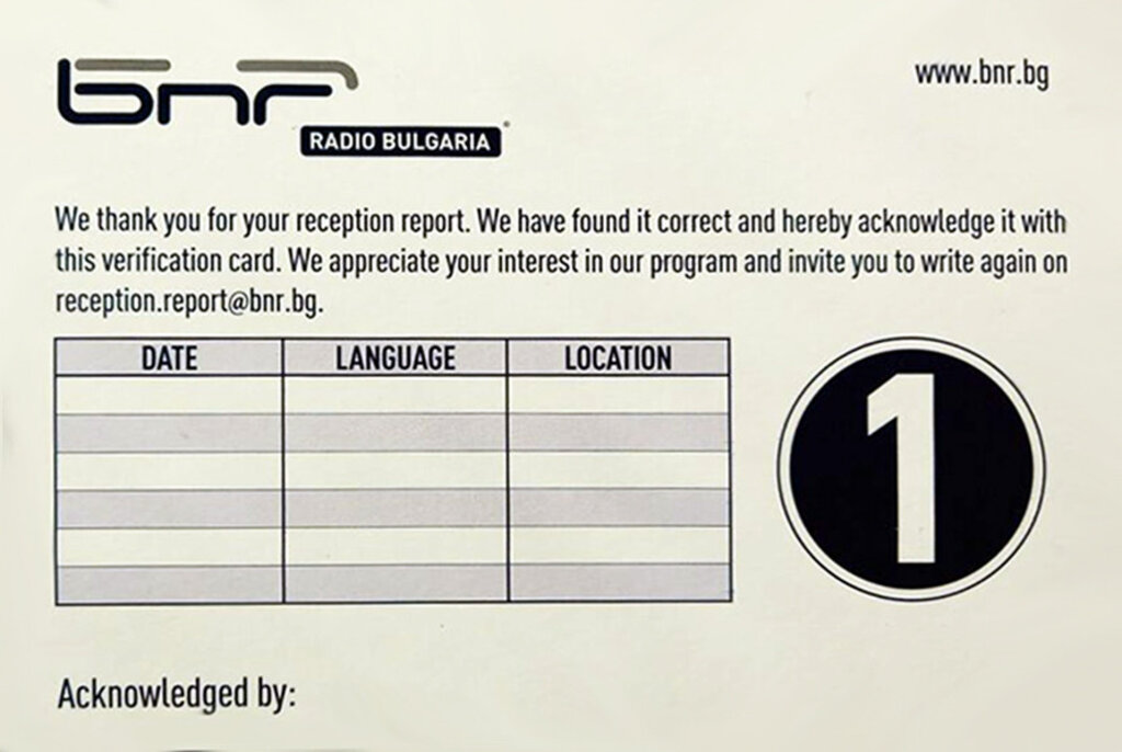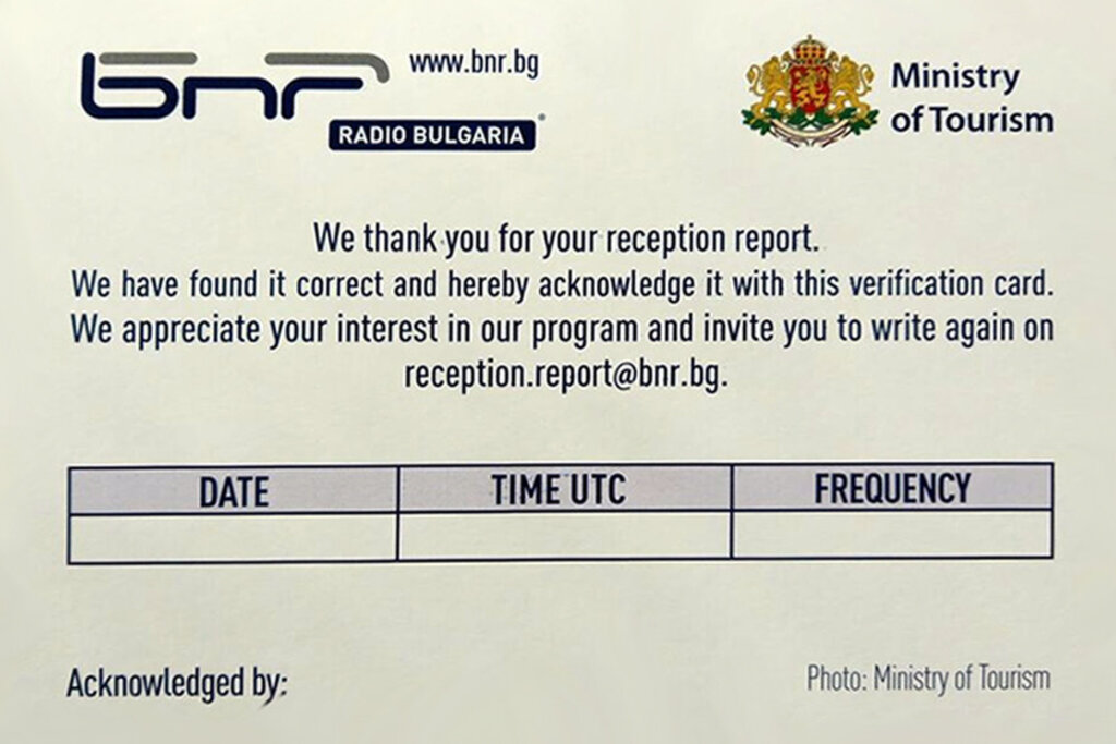 Con la serie de 12 tarjetas, se confirmarán todas las señales recibidas de la Radio Nacional de Bulgaria ( "Horizont", "Hristo Botev", RRS y las emisiones de Radio Bulgaria).