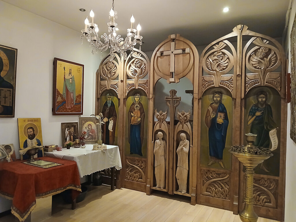 Esta icona de Santa Nina nos fue regalada por un obispo georgiano y el embajador de Georgia. Vinieron aquí y fue una pequeña celebración en aquel momento. Nos ayudan mucho. Esta icona de la Santísima Trinidad también es de los georgianos, recuerda nuestro interlocutor.