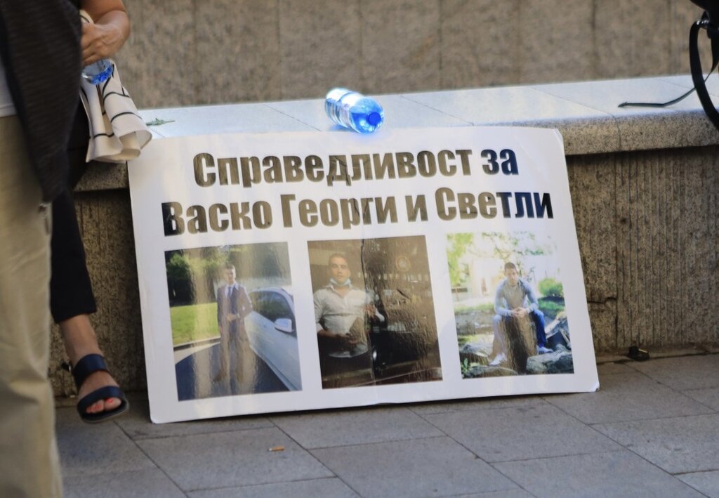 Протестните плакати гласяха "Справедливост за Васко, Георги и Светли", "Политиците, убийци на народа".