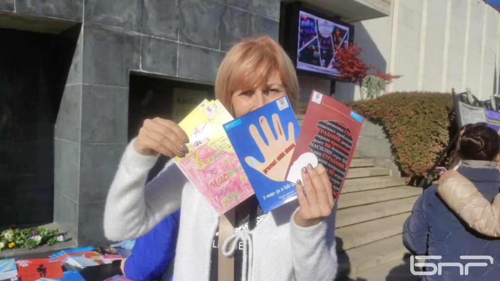 Социални работници, психолози и ученици от три училища раздаваха на минувачите своите рисунки и лични послания срещу детското насилие.
