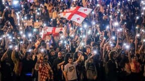 За пета поредна вечер в центъра на Тбилиси хиляди хора протестират срещу решението на управляващите да замразят преговорите за присъединяване към Европейския съюз до 2028 година.