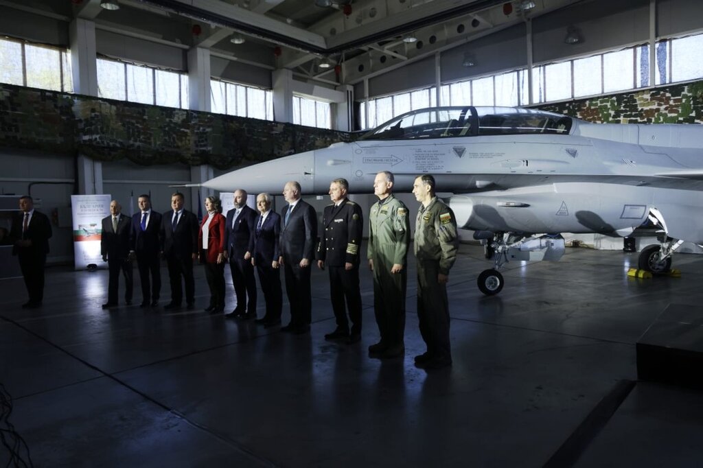 Представянето на новия изтребител за българските военновъздушни сили стана на церемония, в която участваха премиерът Росен Желязков, министърът на отбраната, цялото военно ръководство, както и посланици, дипломати и бивши авиатори и министри, които са допринесли за това България да избере платформата Ф-16.
