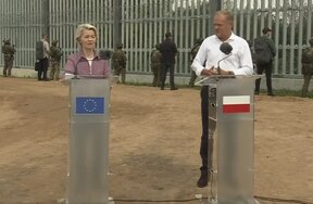 Председателят на ЕК нарече руския президент Путин "хищник, който трябва да бъде отблъснат". По думите ѝ с си в механизма SAFE България ще допринесе за целта на ЕС да произвежда 2 милиона снаряда годишно. Фон дер Лайен подкрепи проектите за изграждане на заводите за 155-милиметрови снаряди и барут в България: "До 1000 работни места ще бъдат открити тук, в Сопот, но също така ще се увеличи нашето производство на боеприпаси. Ще засилим колективната си сигурност, ще засилим сътрудничеството си в НАТО и ще подкрепим смелите украински войски. Това ще доведе до дългосрочен растеж за региона. Навсякъде в Европа ускоряваме производството, защото времената го изискват".