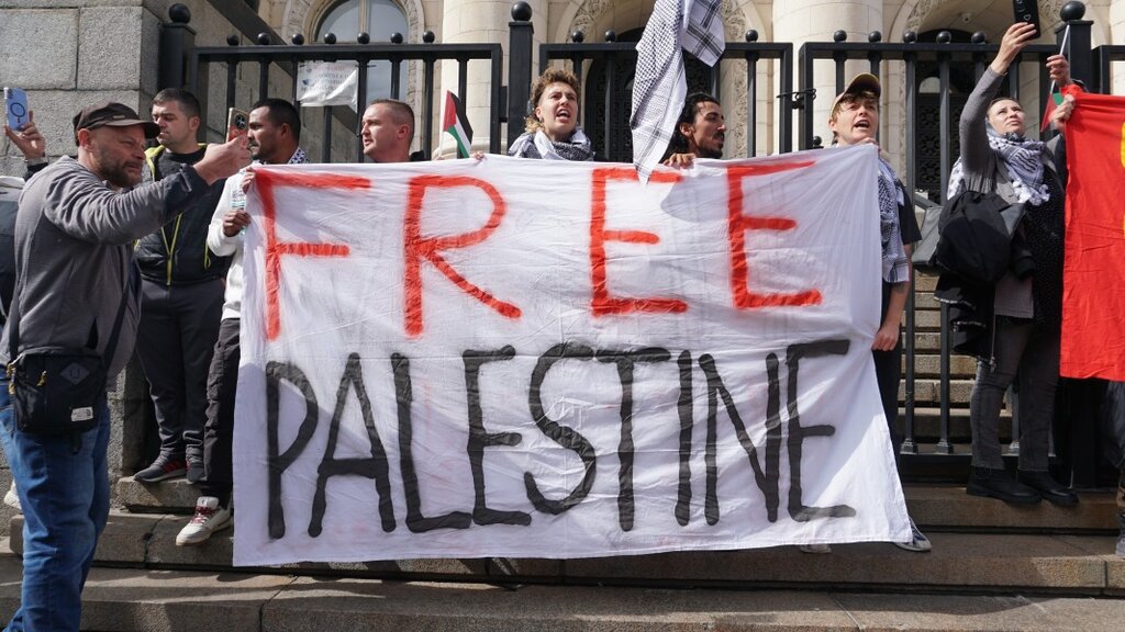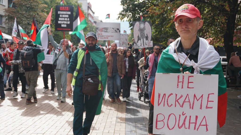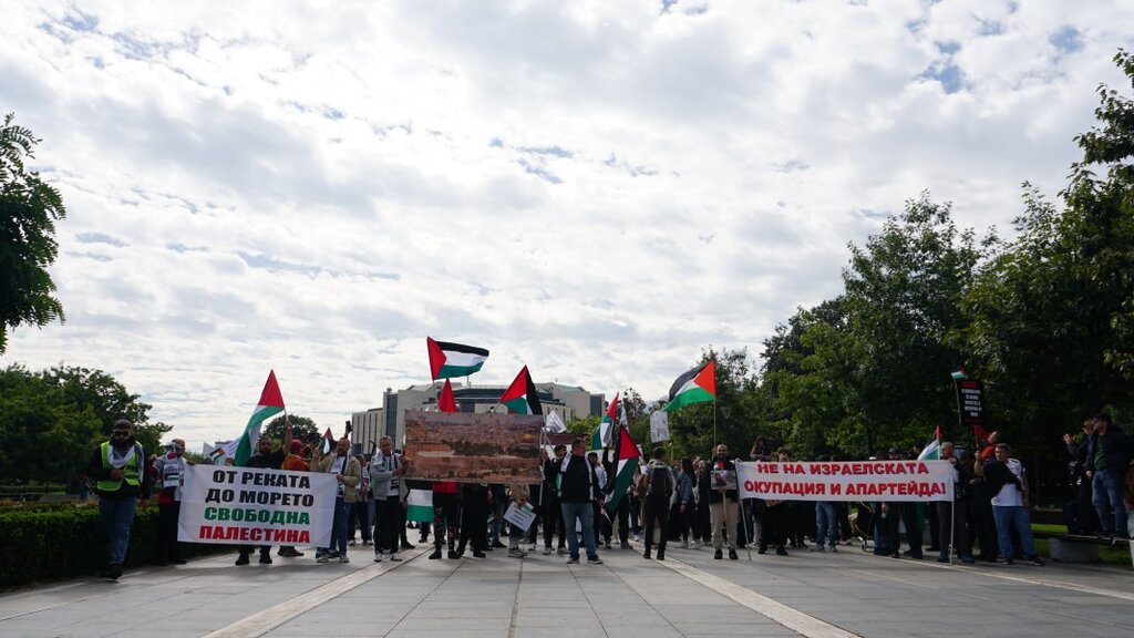 Имаше плакати и призиви за свободна Палестина, обвинения към Израел за геноцид, както и към българските медии, че мълчат по темата.