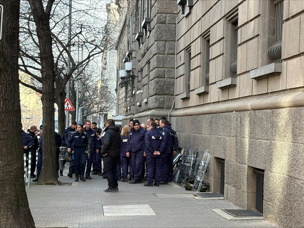 Големи групи от полицаи са разположени пред входовете на Народното събрание, пред сградата на Министерски съвет и по улиците в района.