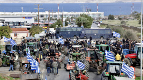 Протестиращите от района на Волос поставиха тракторите на всички пътища, водещи към пристанището. Полицията не успя да ги спре.