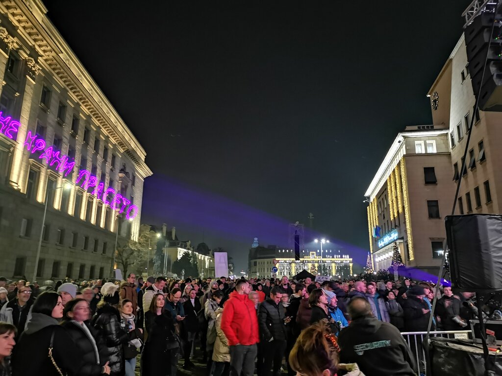 Участниците в протестната демонстрация са изпълнили Триъгълника на властта - между сградите на Народното събрание, президентството и МС. Над трибуната над сцената се прожектират клипове, свързани с Делян Пеевски и неговите парламентарни изяви, по сградите с лазер се изписват призиви.