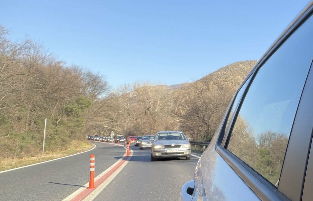 На 103-я км на АМ "Струма" се е образувала два километра тапа, преди разклона на Симитли за Банско. Това съобщи слушател на БНР.