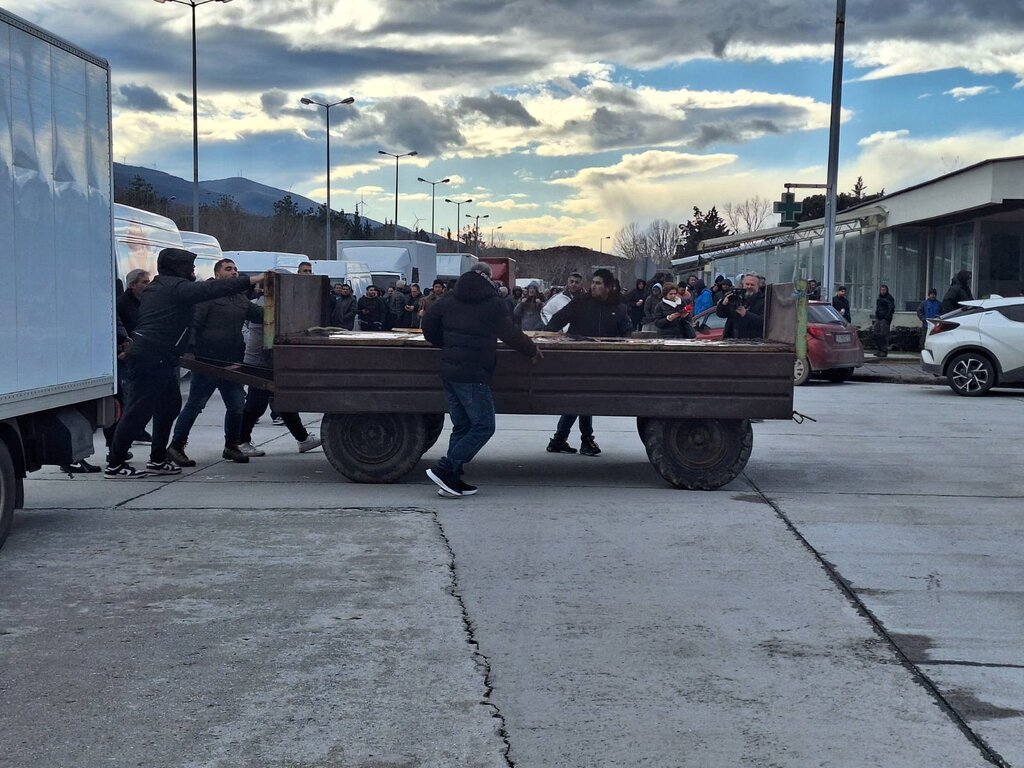Освен стотиците трактори, които повече от месец са разположени до пътя на граничния преход "Промахон-Кулата", днес виждаме и десетки земеделци, които са на самото пътно платно.