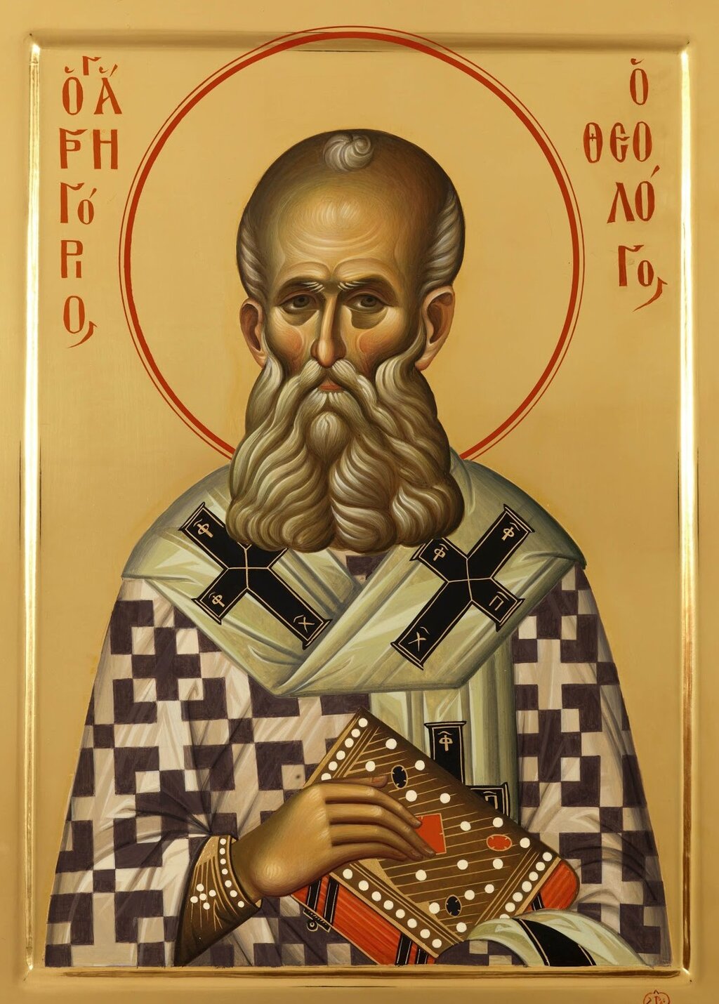 Св. Григорий Богослов бил родом от Арианз при гр. Назианз, Кападокийска област. Син на епископ св. Григорий Назиански и св. Нона. Учил заедно със св. Василий Велики в Атина. Като архиепископ ръководил църквата в Цариград 12 години и се оттеглил в Назианз, където и починал в 390 година на 80 години. Голям богослов, писател, поет оставил неоценимо богословско наследство. Църквата облажава св. Григорий като "Троически Богослов", като "таинник на Св. Троица", пази и следва неговото богословско учение, което разкрива със словата на философстващия разум възвишените истини на апостолската проповед.