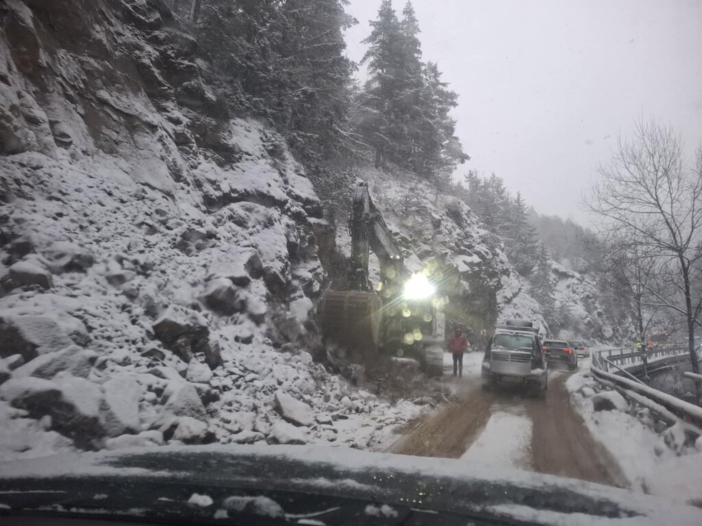 Късно снощи скали се срутиха и изцяло затвориха републиканския път на около 2 км разстояние преди село Стойките.