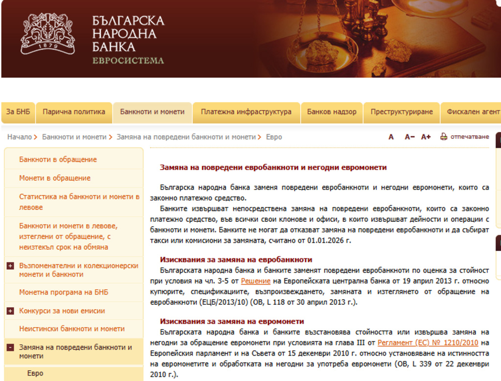 Скрийншот от сайта на Българска народна банка (БНБ)