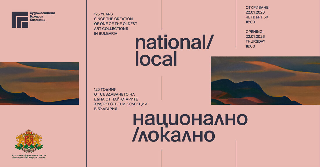 Днес (22 януари) в Българския културно-информационен център в Скопие се открива изложбата "Национално / Локално". Това е селекция на класически творби на Христо Кутев, Дечко Узунов и Ненко Балкански, Константин Трингов и Стоян Домусчиев, както и на съвременни творци като Георги Борисов-Лъва, Велемир Петров, Румен Петков, Димитриос Пападакис, Румен Нечев, Дарина и Андрей Яневи, подбрани от екипа, подготвил експозицията с куратори Пламен Петров и Катя Христова.