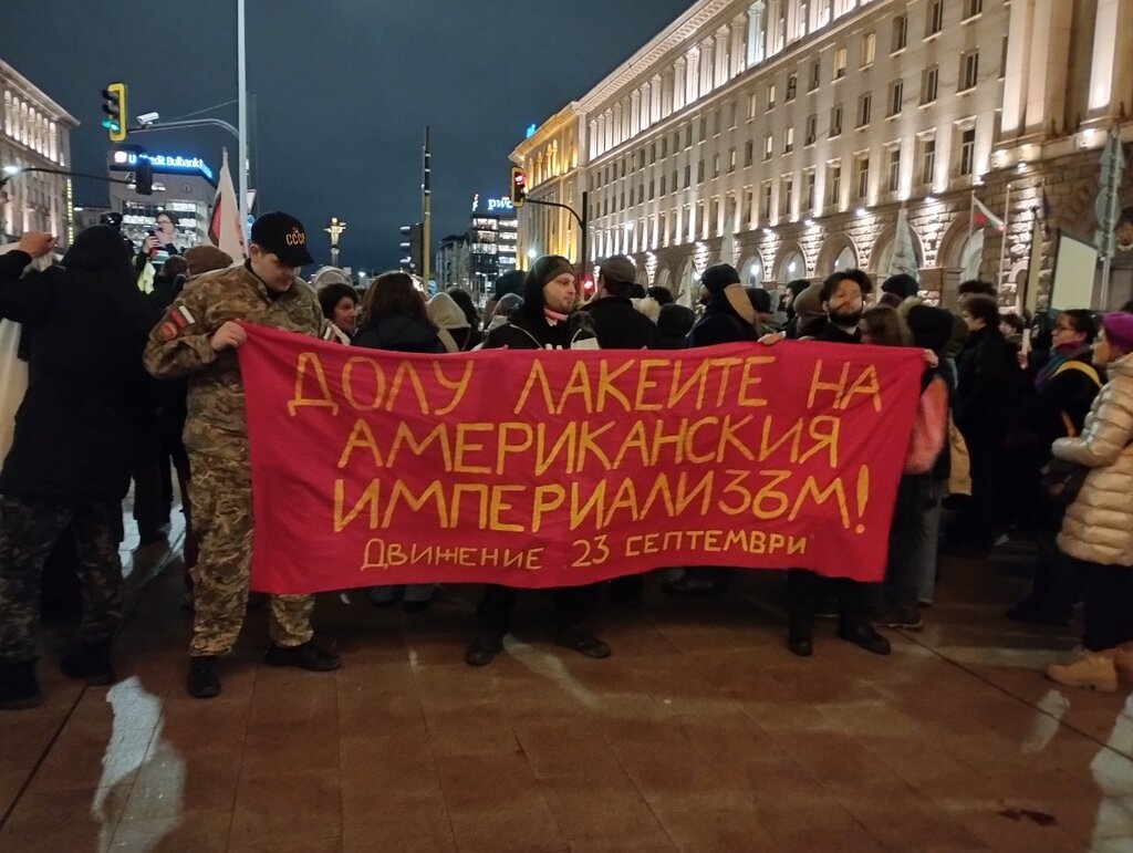 Тази вечер граждани се сърбаха на протест пред сградата на Народното събрание в София и се обявиха срещу участието на България в Съвета за мир под патронажа на САЩ.