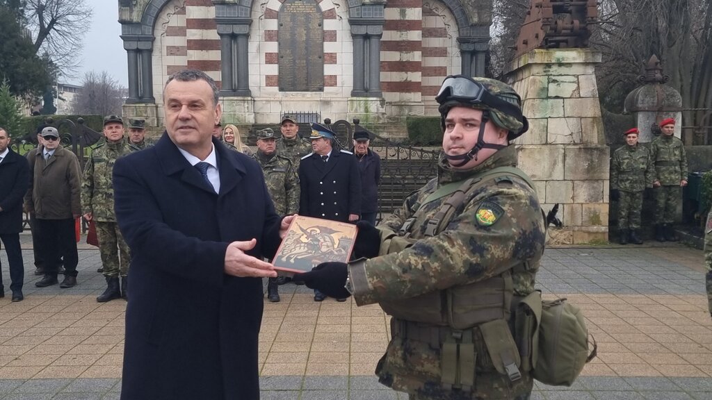С тържествен ритуал днес в Плевен 97 военнослужещи бяха изпратени за участие в Стабилизиращите сили на НАТО в Косово (KFOR). В продължение на шест месеца, българският контингент ще изпълнява своите задължения в съюзен формат. Тържествената церемония се с проведе на централни площад "Възраждане". Водосвет за здраве и успех на мисията отслужи отец Кръстев от плевенския храм "Света Троица". Кметът д-р Валентин Христов подари икона на Свети Георги Победоносец на военнослужащите, за да ги пази и закриля. Заместник-министърът на отбраната Радостин Илиев пожела на контингента здраве и успешно завръщане и заяви в словото си: