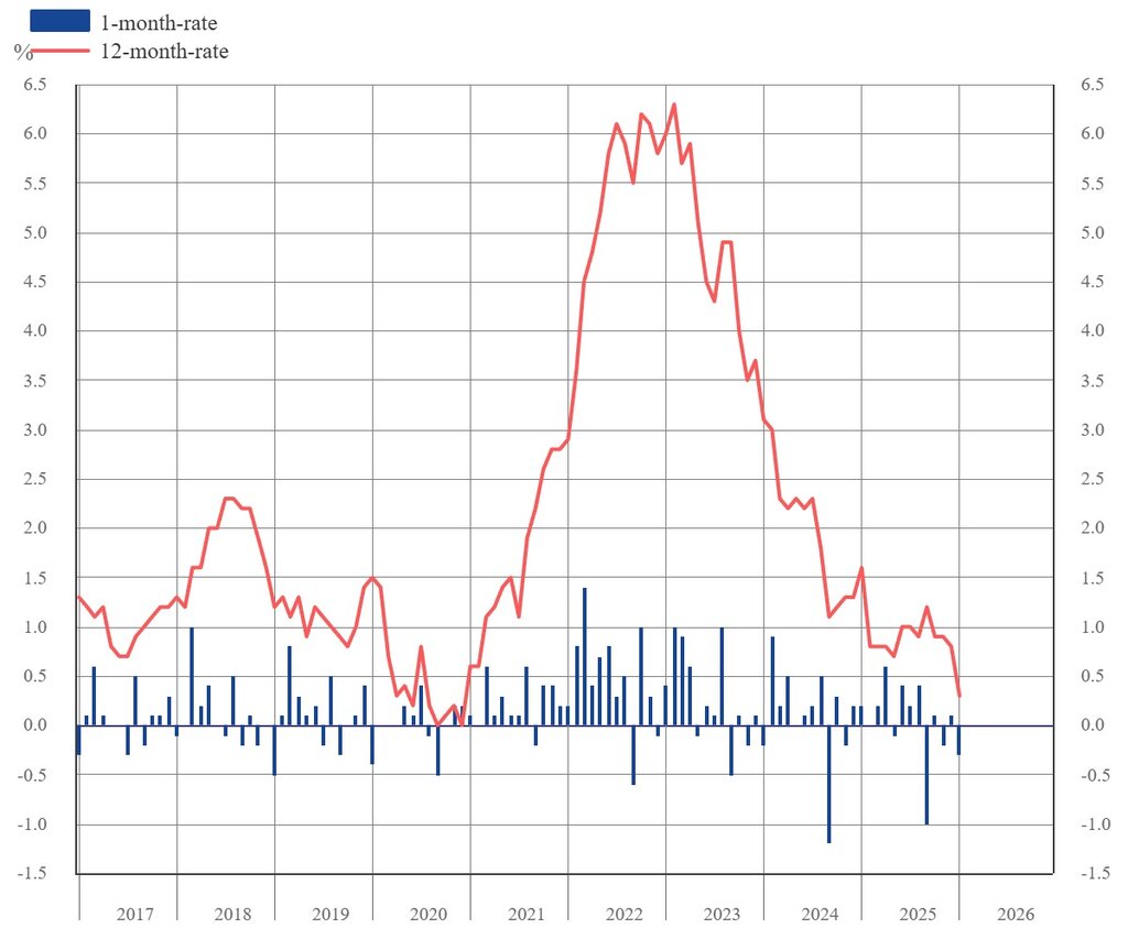 Това е най-ниската годишна инфлация в страната от декември 2022 г. насам.