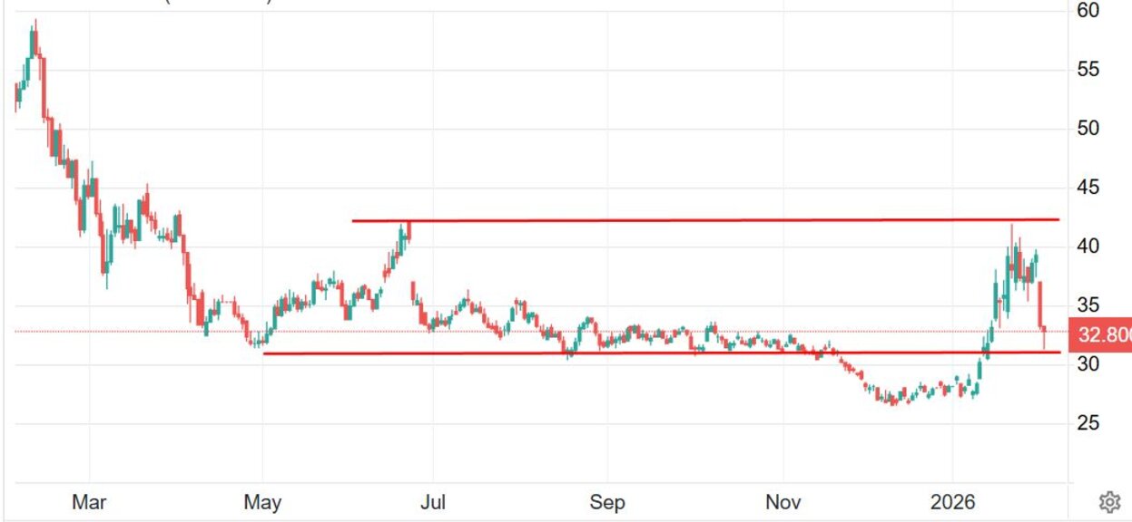 Към 16.00 часа българско време фючърсите на нидерландския газов хъб TTF се понижават с 2% към 32,65 евро за мегаватчас (MWh), като за кратко удариха ценово дъно около 31,28 евро - най-ниско ниво от 14-ти януари насам, след като в понеделник поевтиняха с цели 15%. По този начин газовите TTF отстъпват от 7-седмичния връх към 41,91 евро/MWh, достигнат на 22-ри януари.
