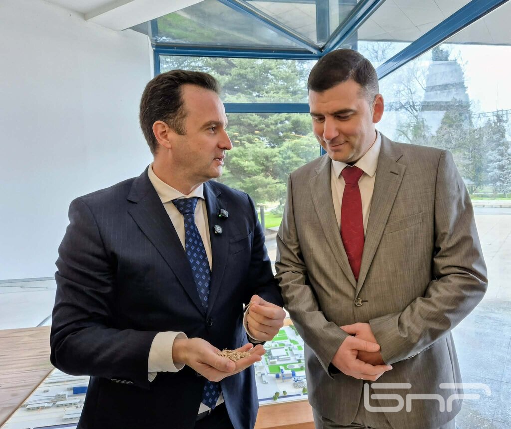 На снимката (от ляво надясно): Жечо Станков (енергиен министър в оставка) и Деян Димитров, изп.директор на ТЕЦ 2