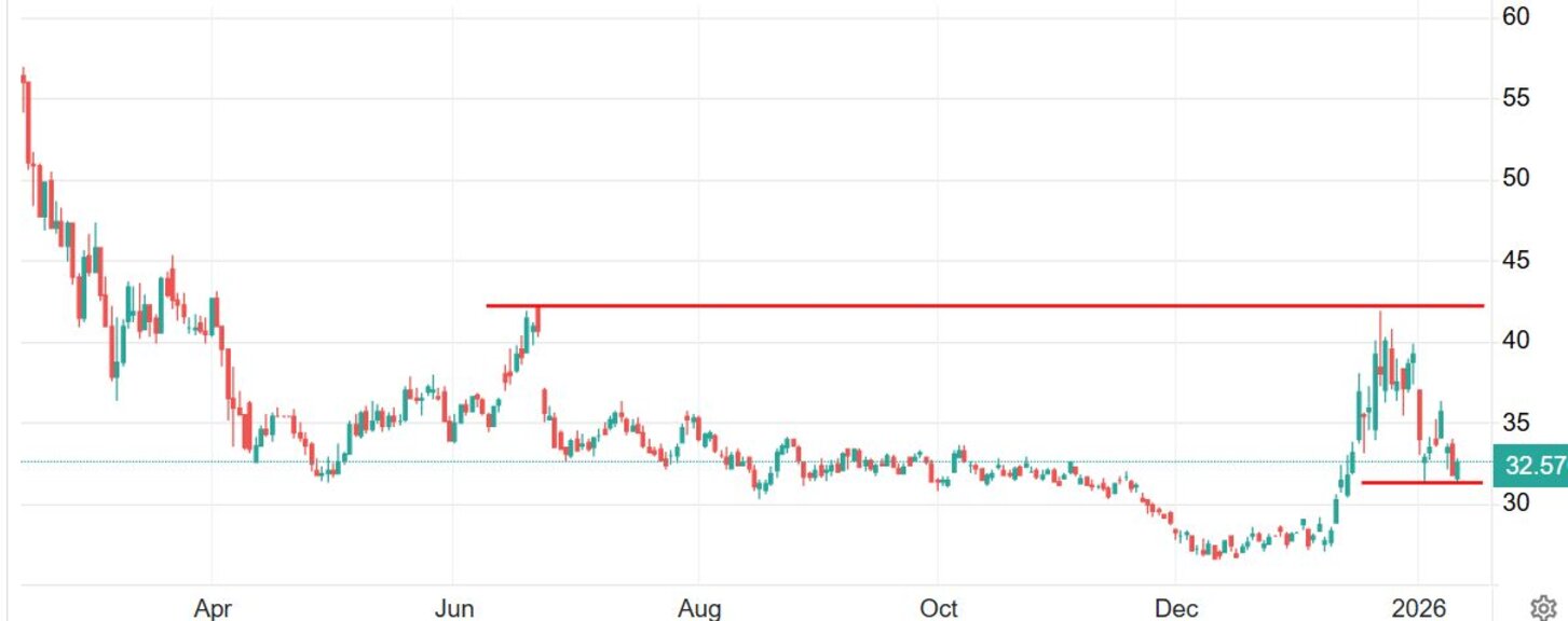 Графика на газовите TTF фючърси за март (в евро за мегаватчас)
