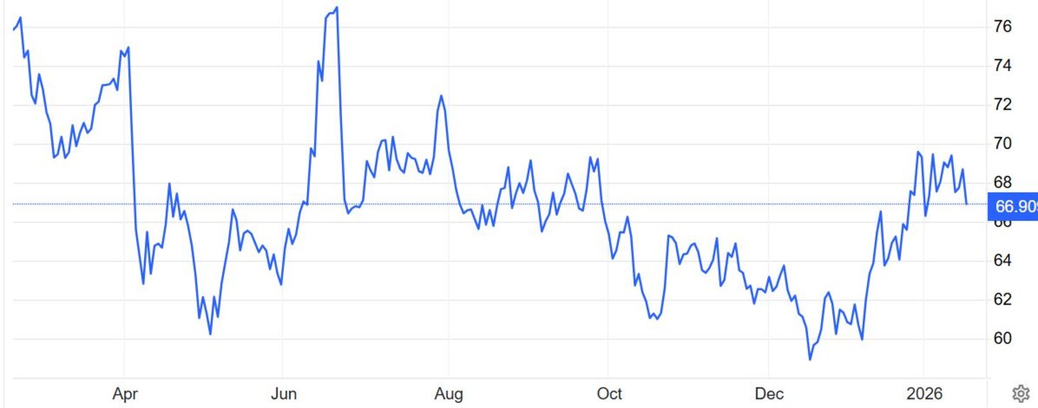 Фючърсите на петрол Брент се понижават с 2,5% към и под 67 долара за барел, а тези на американския лек суров петрол WTI - с 1,5% към и под 62 долара за барел, след като иранският външен министър Абас Арагчи заяви, че двете страни са провели "сериозни и конструктивни" разговори и са постигнали общо споразумение по набор от принципи.