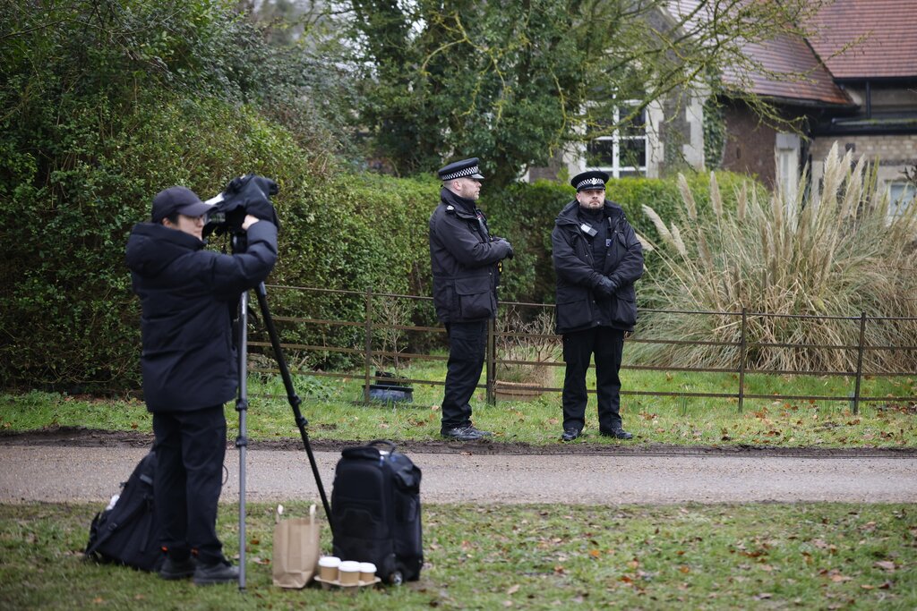 Пред Ууд Фарм, където Андрю Маунтбатън-Уиндзор (бивш принц Андрю, херцог на Йорк) беше арестуван, в Сандрингам, Норфолк, Великобритания, на 19 февруари 2026 г.