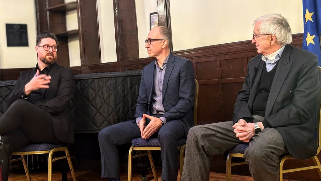 Състоя се кратка дискусия с модератор Върбин Стайков, завършил Университета през 1996 г., в която взе участие и проф. Дженик Рейдън от Колумбийския университет, който е и председател на Борда на настоятелите на Американския университет в България.