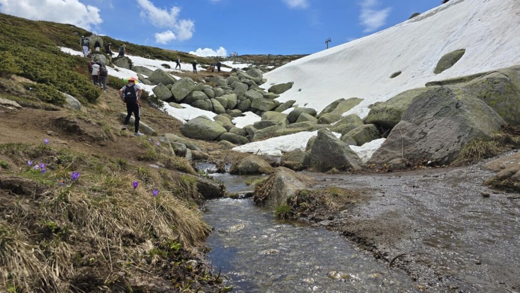 Незадолго до того, как вы достигнете вершины, местность становится более грязной и местами заснеженной, поэтому лучше надеть высокую непромокаемую обувь, чтобы не замочить ноги.