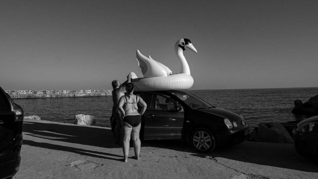«Я не хотела бы казаться слишком социальной, но на моем любимом кадре видны две женщины разных рас и разного возраста, севшие на скамейке, обняв друг друга, – делится фотограф. – Момент был настолько интимным на фоне всего происходящего вокруг, что этот акт заботы и любви исключительно впечатлил меня. Есть и другие подобные ситуации. Так например, когда я проходила мимо курящей женщины как раз в то мгновенье, когда дым встал облаком перед ее лицом, буквально укрыв его. Или же, когда неподалеку от болгарского пляжа я встретила людей, грузящих на свою машину надувной лебедь, но с места, где находилась, я видела его на самой границе между берегом и морем, и мне казалось, что он плывет по горизонту».