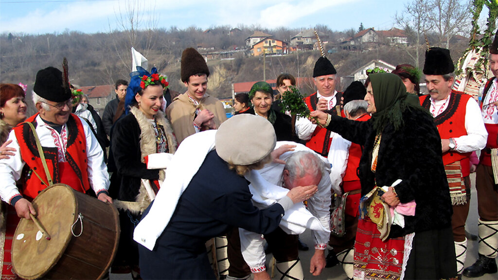 Цело село је прати до оближње реке или чесме где се изводи ритуал купања. На неким местима бабицу изводе у поље и тамо је заливају водом. Затим је прате до куће и опет је дижу на руке и тако уносе у њену кућу. У то време музичари не престају да свирају, мушкарци и жене играју и веселе се.