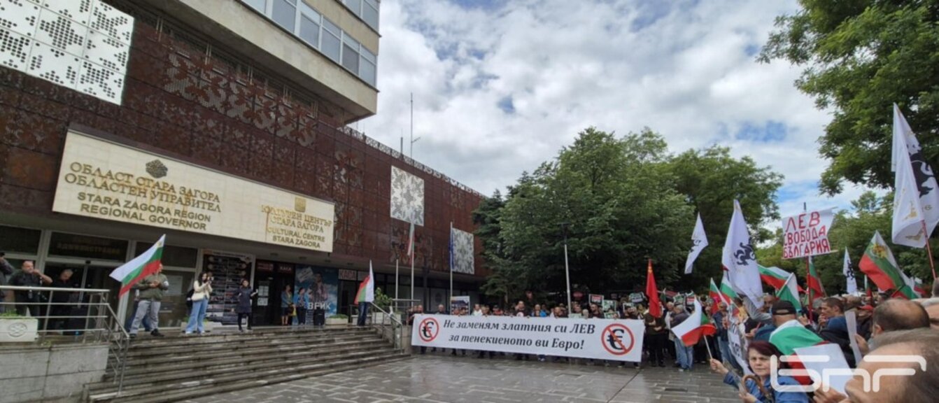 Граждани на Стара Загора се включиха в националния протест срещу въвеждането на еврото. Проявата е част от мащабна инициатива, организирана от граждански комитет и подкрепена от партия „Възраждане“.