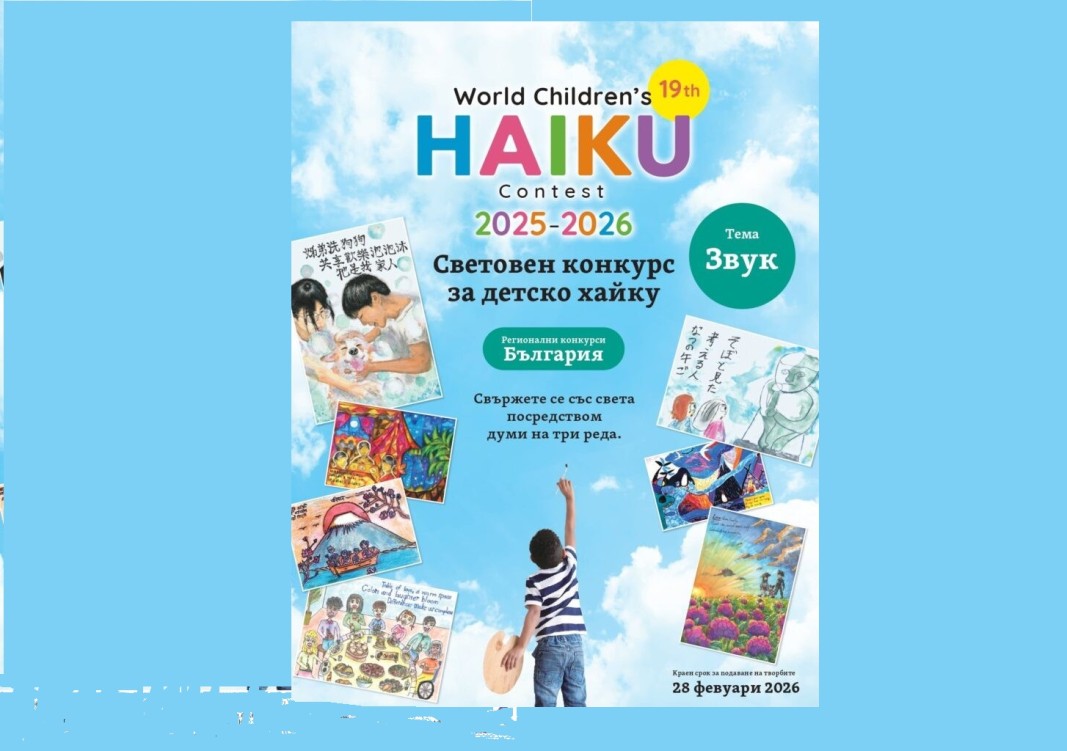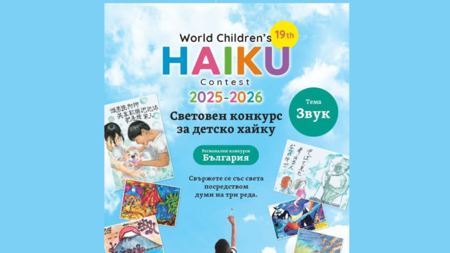 Децата от България ще имат възможност да участват за пета поредна година в XIX Световен конкурс за детско хайку, организиран от JAL Foundation в Япония. Темата на тазгодишното издание е „Звук“, а млади автори до 15-годишна възраст могат да изразят своята креативност чрез кратката японска поетична форма хайку, съчетана с рисунка. Това каза Зорница Харизанова, секретар на Български хайку съюз.