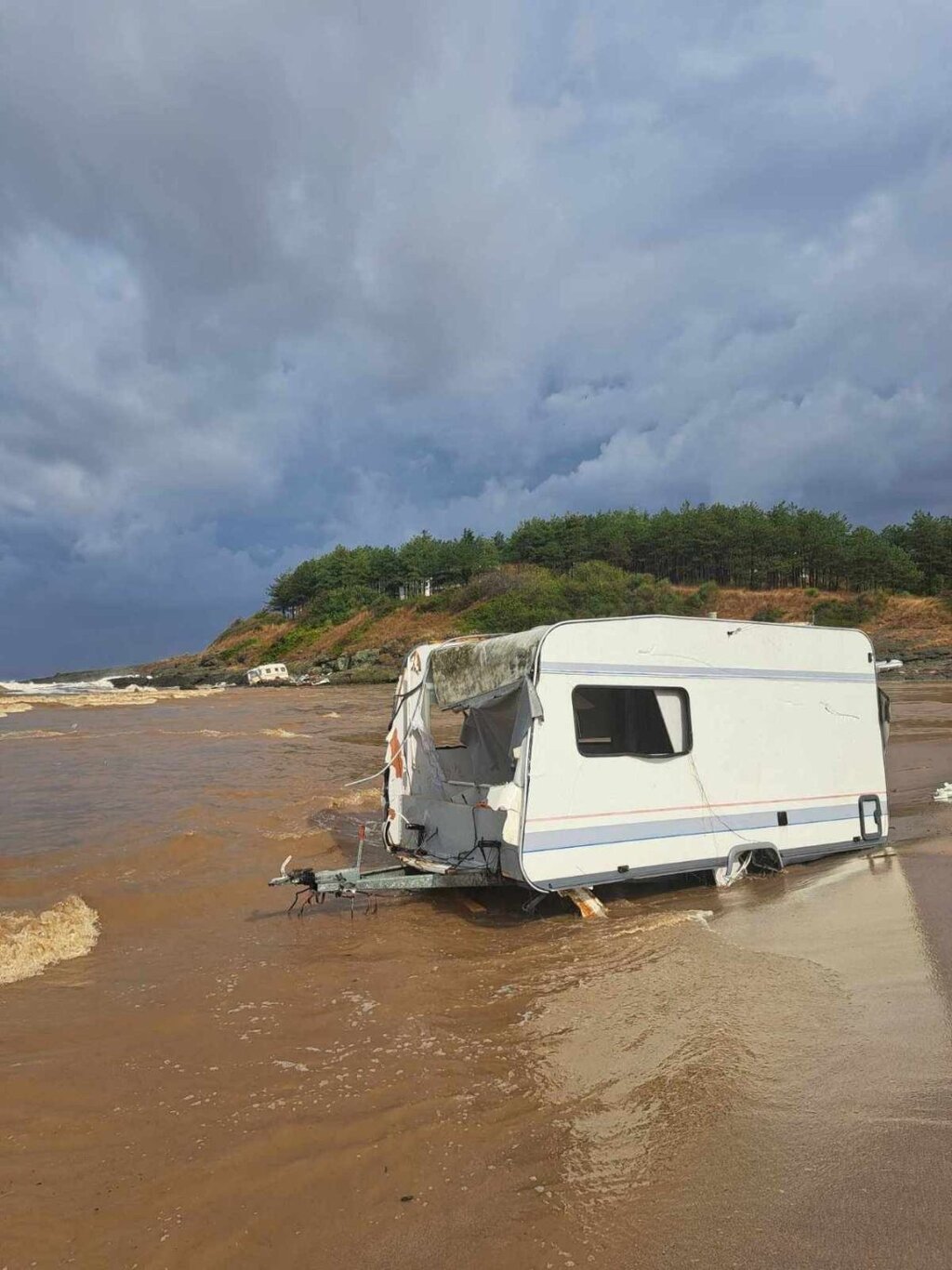 Два метра достигна водата на къмпинг "Арапя" в резултат от проливните дъждове днес. На телефон 112 са получени сигнали за няколко автомобила, които са в морето.