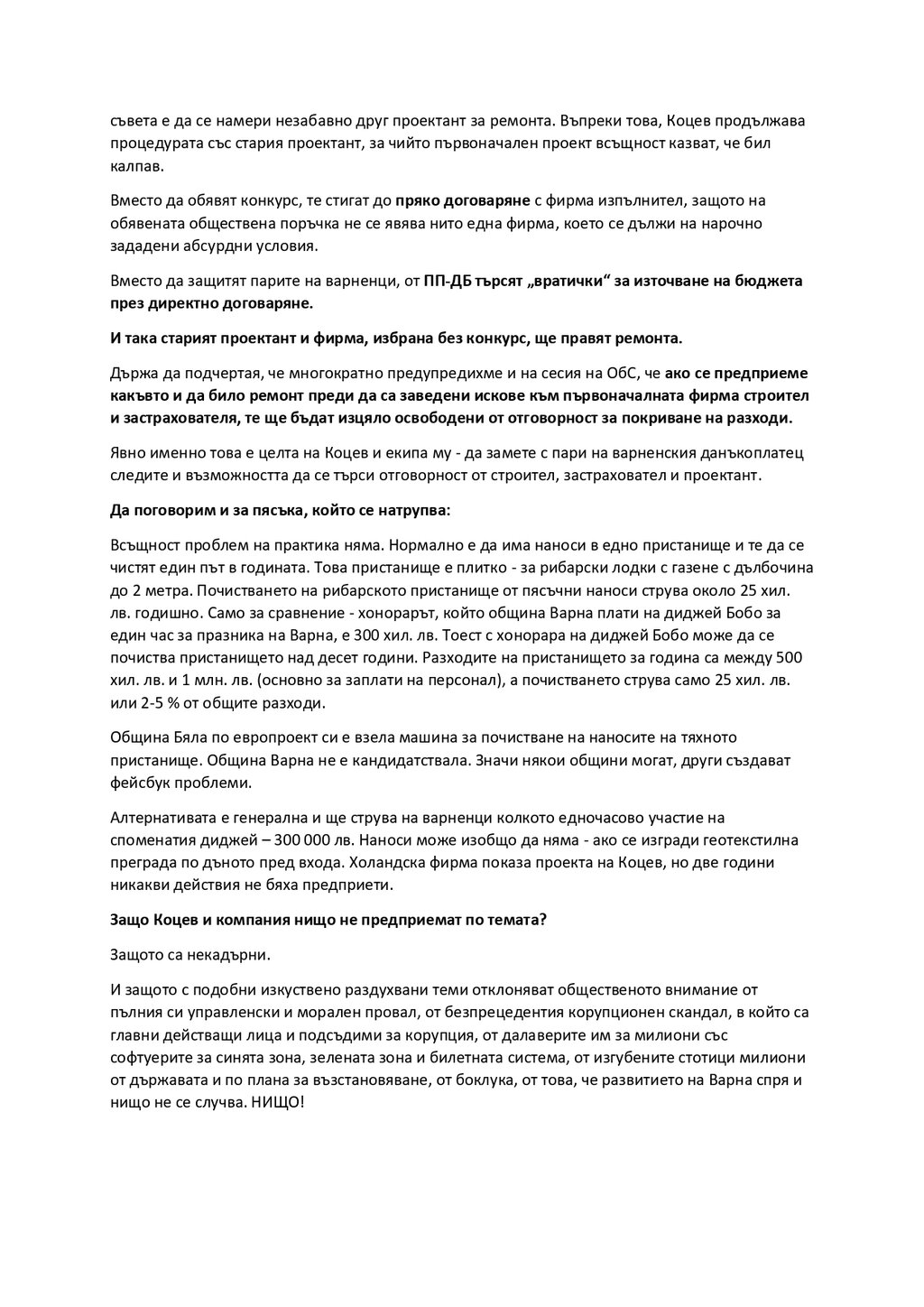 По думите му темета с рибарското пристанище се използва всеки път от политическите му опоненти преди важни решения за Варна, преди избори или когато самите те искат да прикрият собствен скандал.