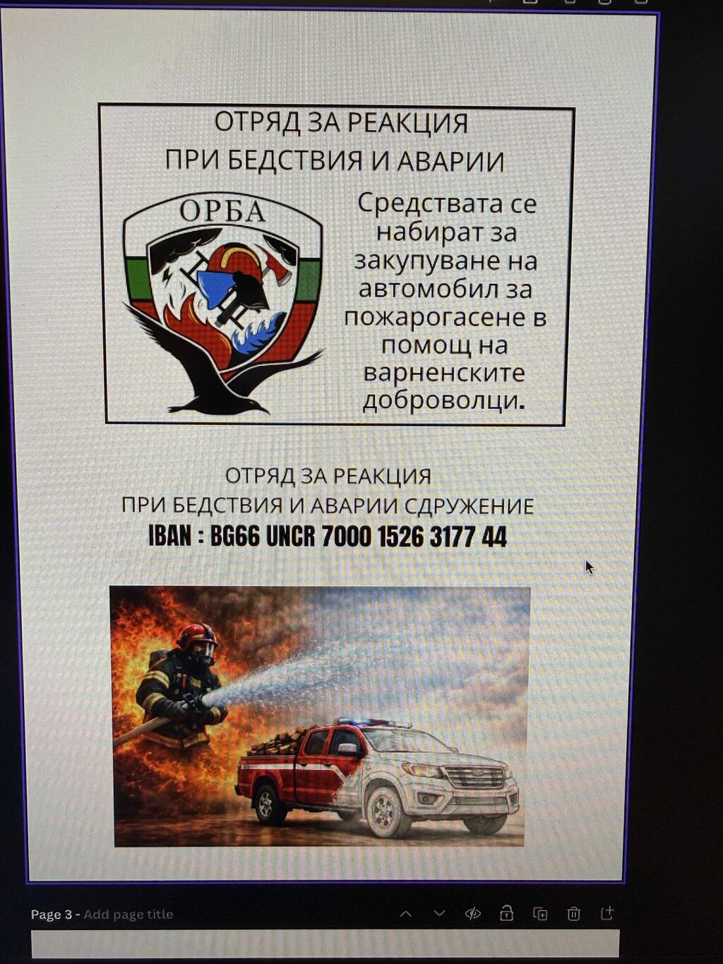 Сметката за набиране на средства е публикувана във фейсбук страницата на Отряда за реакция при бедствия и аварии.
