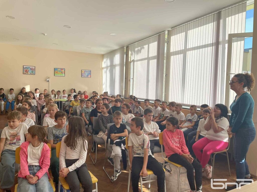Днес посетихме ОУ "Георги Бенковски", където десетки деца се събраха в актовата зала на школото, за да чуят някои от приказките от деветото издание на книжката, както и да споделят какво те обичат да четат.