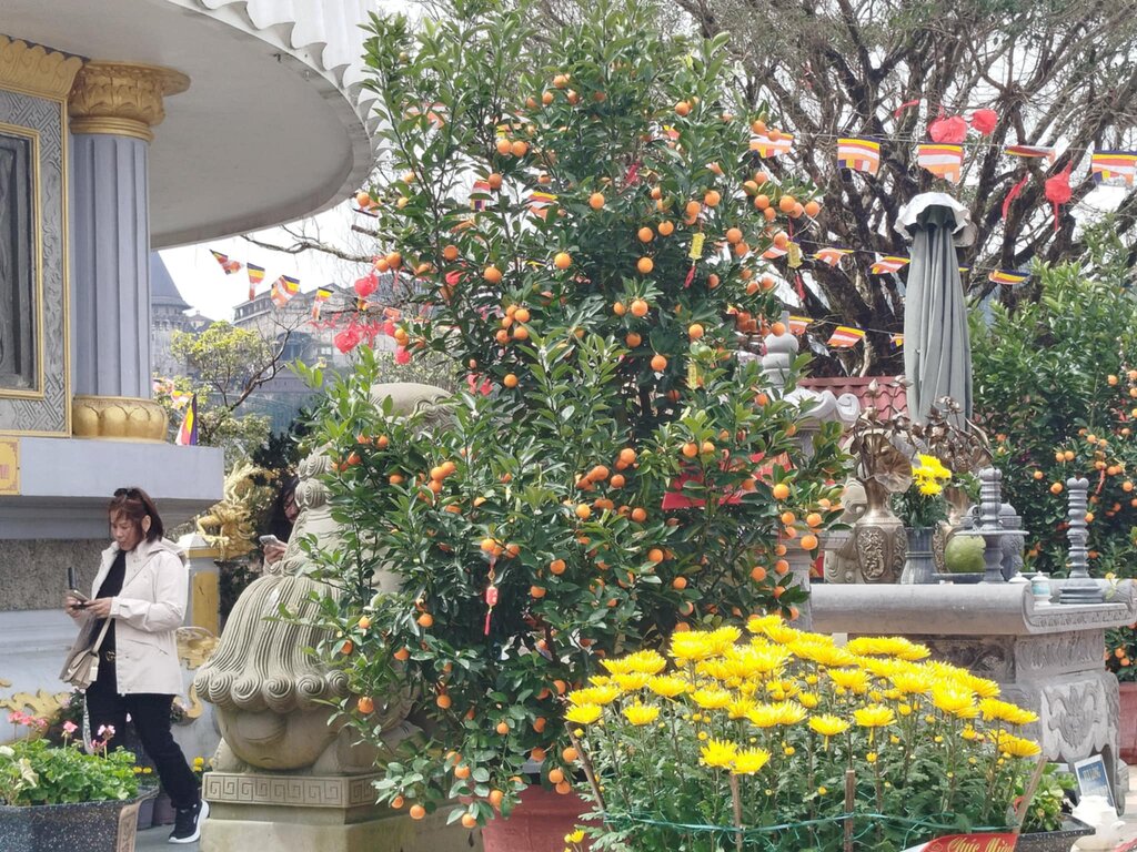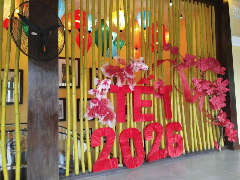 Няколко дни преди празника имахме чувството, че цяла гора от мандаринови малки дръвчета, отрупани с плодове, и големи клони от цъфнали праскови и огромни букети от орхидеи се движат по улиците, закрепени по седалките на мотоциклети. Не е специално шествие, а завръщане от пазар. Както в Европа за Коледа символът е елхичка, за виетнамската Нова година това са дръвчетата, символизиращи празника. Новата година се чества минимум пет дни, а понякога почти месец. Често при украсата в общественото пространство двойките на 2026 г. се изобразяват като препускащи коне. Балони, скулптури, бонбони също имат формата на кон.