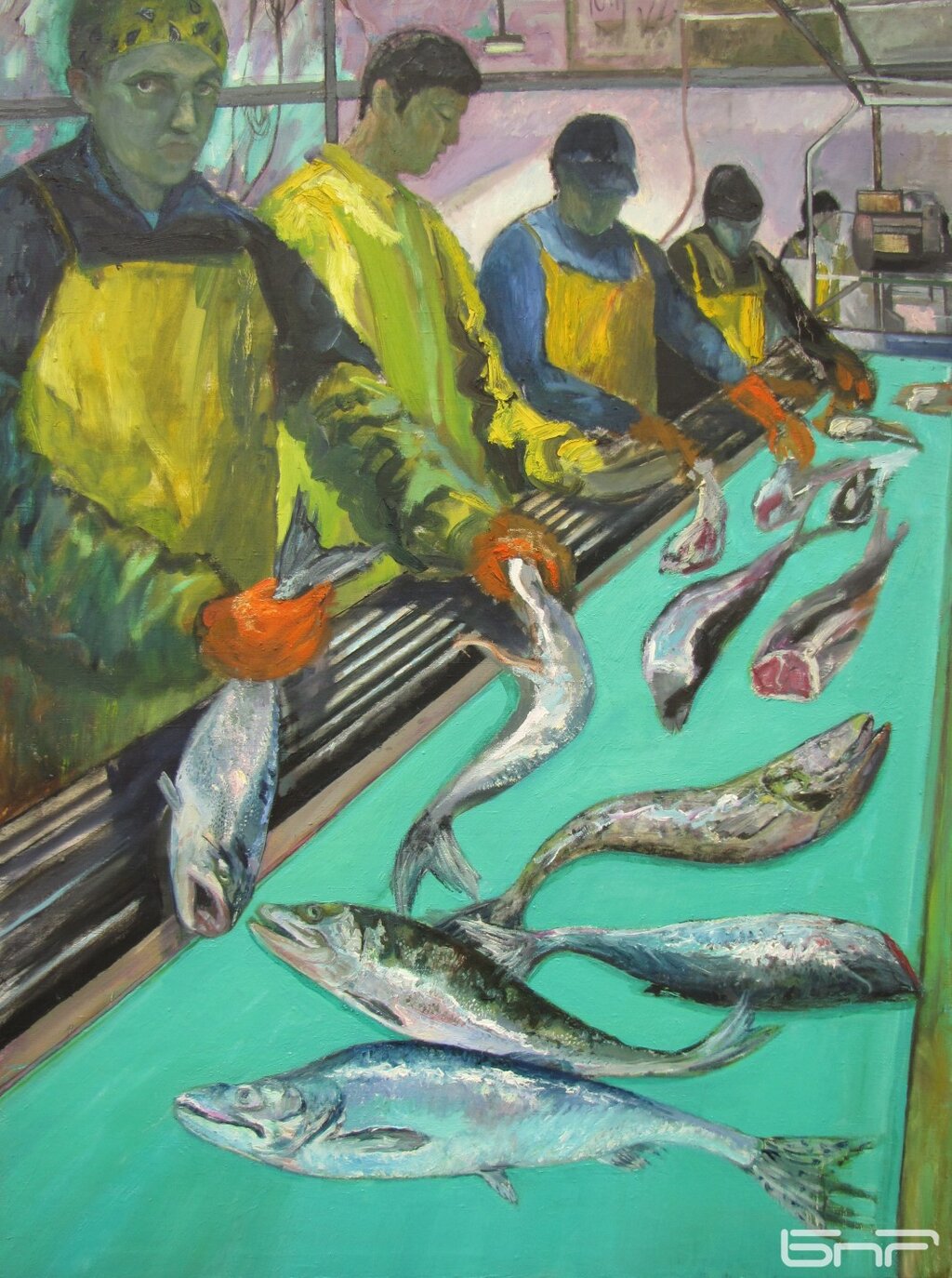 С изложбата си "От Аляска до Аляска" разказвам историята за това пътешествие в картини. Всяка една от тези картини е дълбоко преживяна случка. Основната тема в изложбата е рибната фабрика.