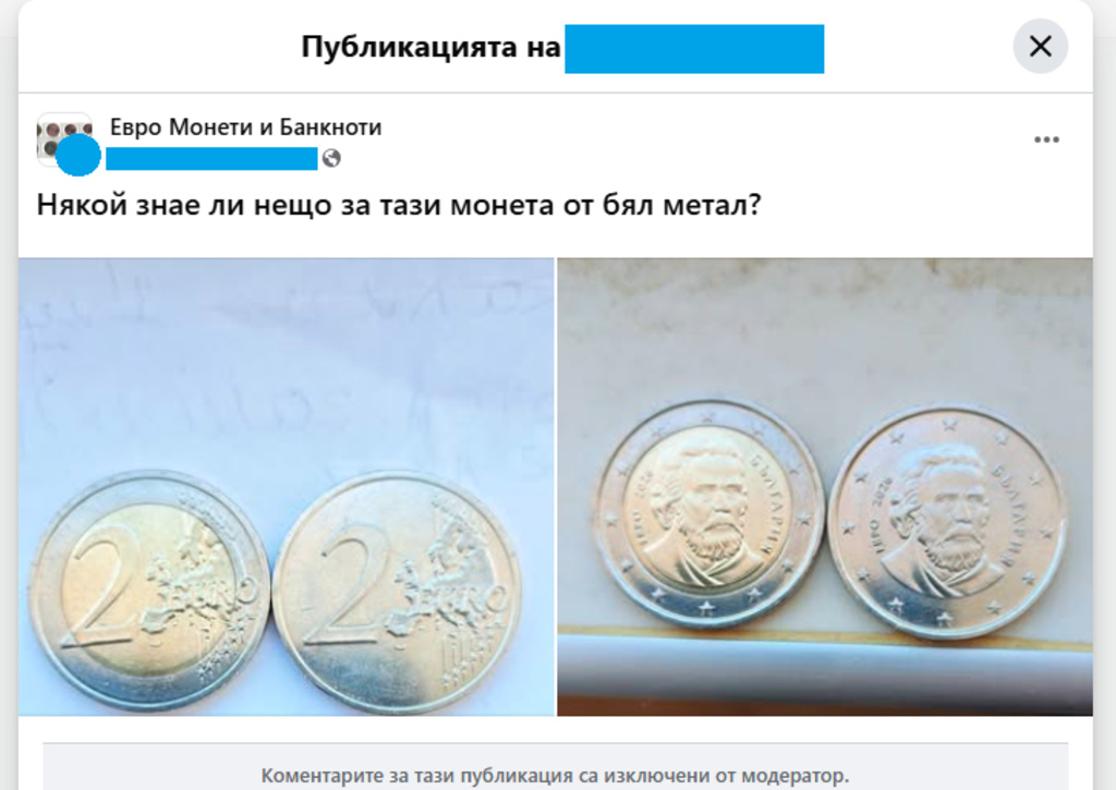 Също както заглавията на някои статии в онлайн медии за надрасканите евробанкноти - ПОДВЕЖДАЩИ за потребителите на социалните мрежи, че се тиражират фалшиви евромонети с българска национална страна са и постове като този с посребрените 2 евро, чиято автентичност остава под въпрос и към този момент.