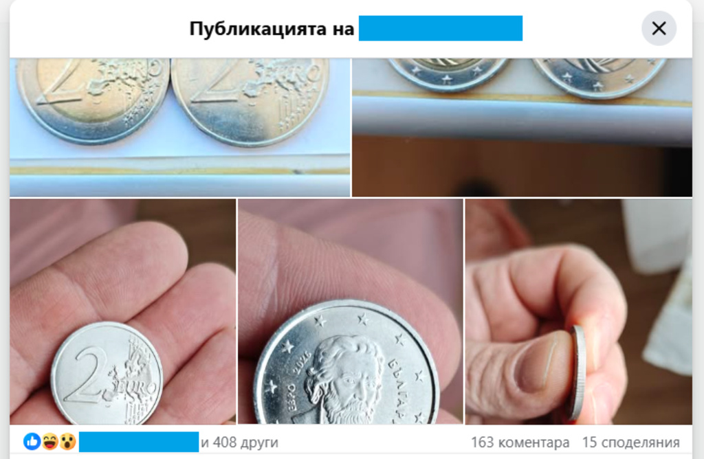 Стотици реакции и десетки коментари за дни събра например пост в онлайн група за колекционери на евромонети и банкноти с цел покупко-продажба, размяна и дискусия за тях, в която бяха споделени снимки на две монети от 2 евро за сравнение, тъй като на едната липсва надписа "БОЖЕ ПАЗИ БЪЛГАРИЯ", както и "златостото" покритие, както го нарекоха запознати нумизмати.