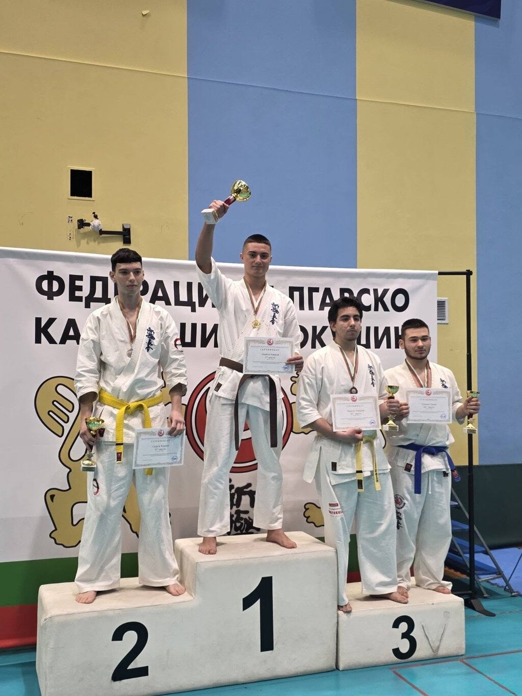 Общо 10 медала, от които 1 златен, 6 сребърни и 3 бронзови извоюваха състезателите на Спортен клуб по карате "Киокушин“ в Шумен на националните първенства в Пазарджик. Това съобщава сенсей Даниел Димитров.